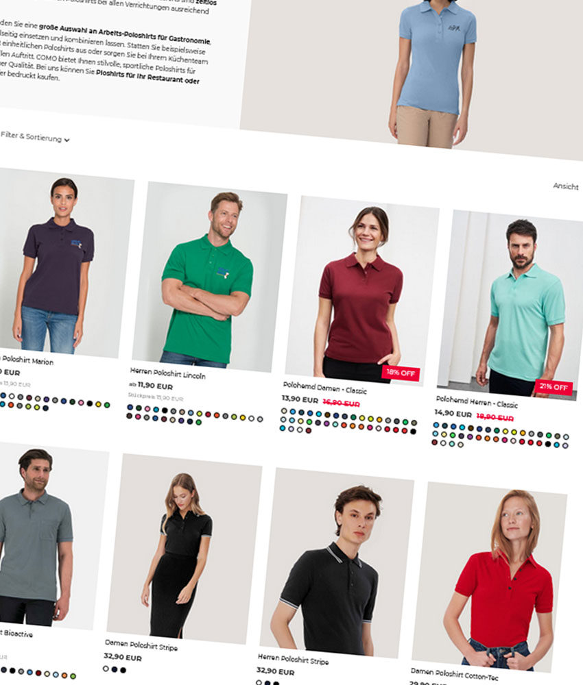 Mit COMO haben sie viele Möglichkeiten zur Umsetzung Ihrer Corporate Fashion. Neben der individuellen Beratung können Sie in unserem Shop schon Ihre eigene Vorauswahl zusammenstellen.
